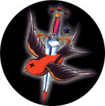 BIRD ON DAGGER ROUND STICKER CLEARANCE - 2 1/2" ROUND